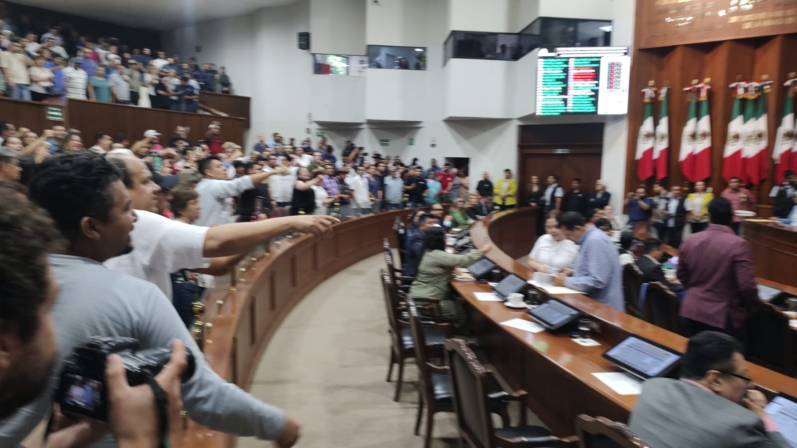 Así transcurrieron algunos minutos hasta que el diputado morenista Serapio Vargas Ramírez se acercó a la presidenta para pedirle que se pusiera a votación del Pleno el sustituir la primera lectura del dictamen, a lo cual accedió la diputada Félix Niebla. Por votación nominal, 29 diputados votaron a favor, 5 en contra y dos se abstuvieron de votar, por lo que se dio como concluida la lectura y de inmediato se declaró un receso, ante los gritos y consignas de los presentes.