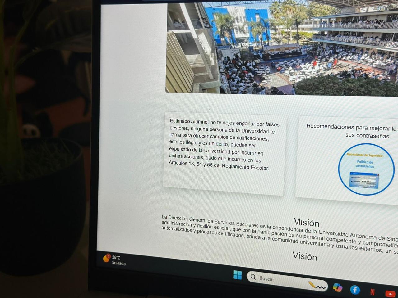 La Universidad Autónoma de Sinaloa (UAS) a través de la Dirección General de Servicios Escolares (DGSE) hace un llamado a los estudiantes y padres de familia a que estén alerta ya que de un mes a la fecha han detectado llamadas y mensajes de un número celular del cual “ofrecen” hacer el cambio de calificaciones, lo cual es sólo un fraude ya que los sistemas de la institución no pueden ser vulnerados para tal propósito.