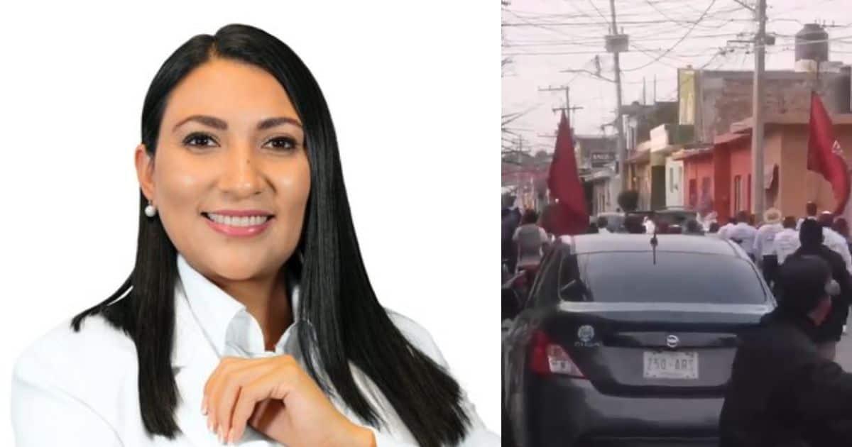 De acuerdo con imágenes que fueron difundidas a través de redes sociales, se observa a la candidata y sus simpatizantes avanzan por la calle gritando “Morena, Morena”, cuando detonaciones de armas de fuego rompen la paz y los asistentes corren despavoridos.