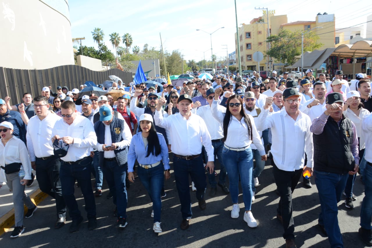 Durante el recorrido, los manifestantes corearon consignas y múltiples pancartas eran alzadas con diferentes leyendas sobre el entorno del problema entre Jesús Madueña Molina y el gobierno del estado.