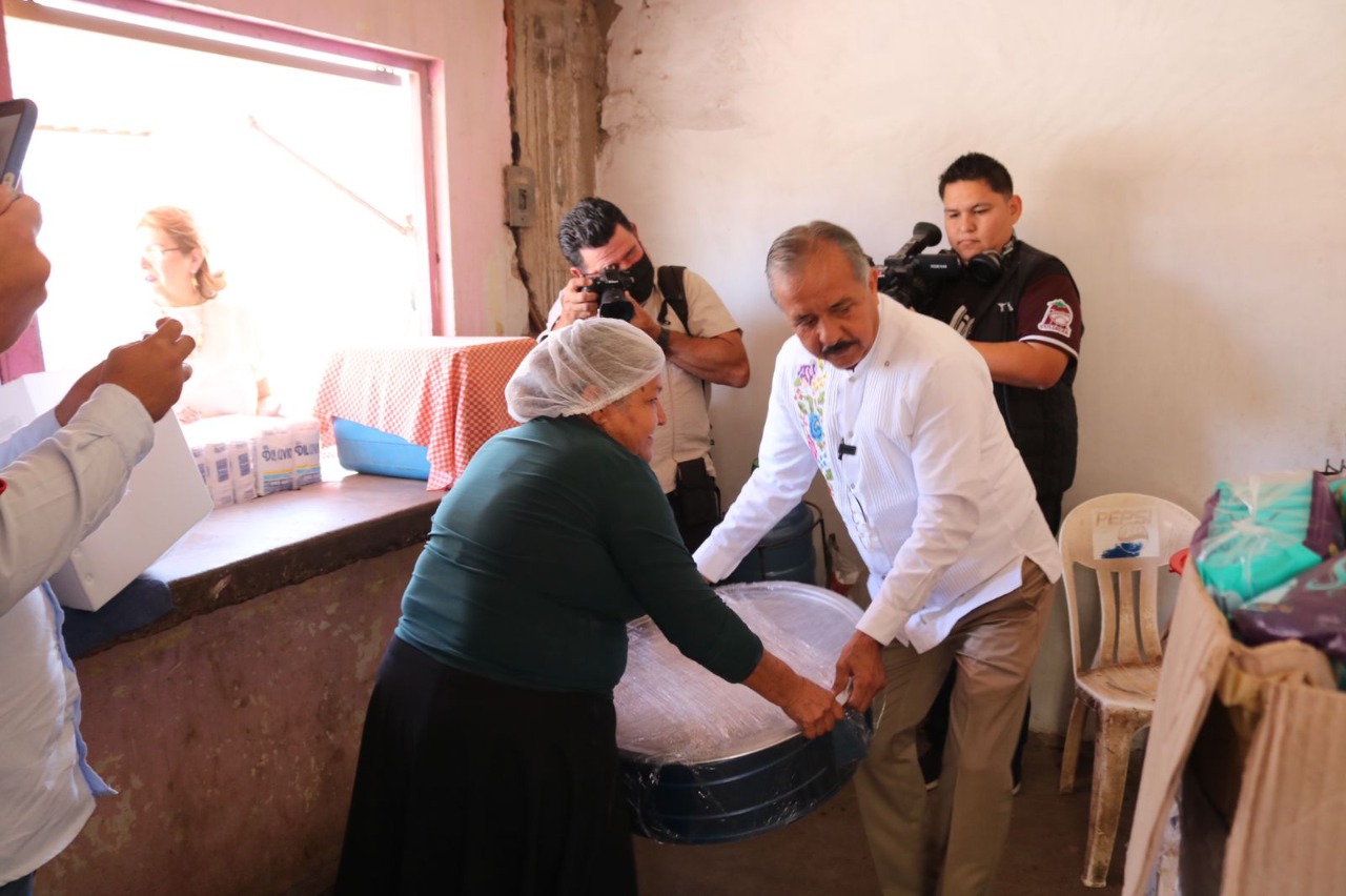 Hasta su vivienda arribó la presidente de la paramunicipal, Sra. Guadalupe López de Estrada, acompañada del alcalde Lic. Jesús Estrada Ferreiro para hacer entrega de la materia prima consistente de harina, manteca y sal que la adulto mayor requiere para la venta de sus tortillas, además de artículos de higiene personal.