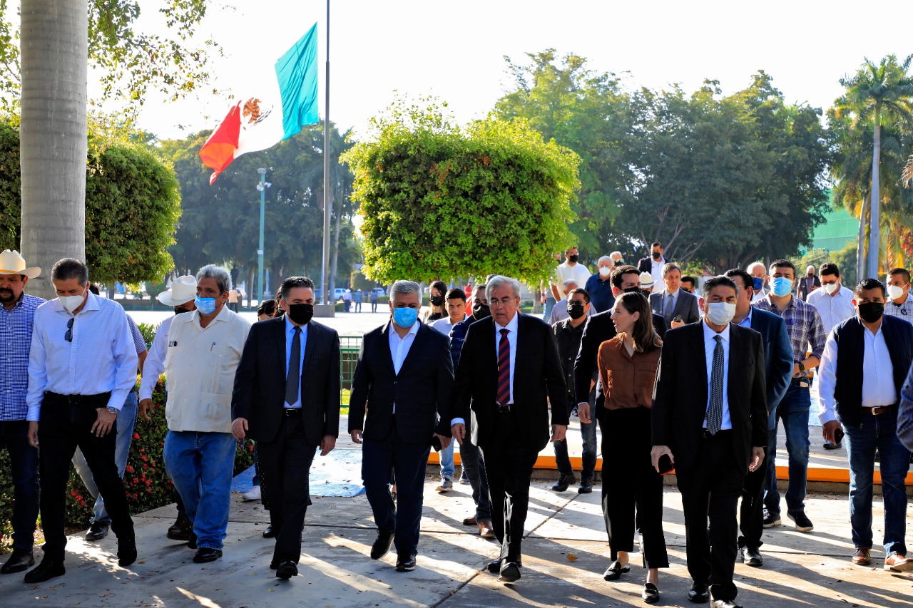 El Gobernador Rubén Rocha Moya encabezó el evento cívico, acompañado del Secretario de Gobierno Enrique Inzunza Cázarez, la Fiscal General del Estado de Sinaloa Sara Bruna Quiñones Estrada, el Magistrado Jesús Iván Chávez Rangel, Presidente del Supremo Tribunal de Justicia del Estado de Sinaloa, el Teniente Coronel D.E.M Carlos Ernesto Gallegos Almaguer, Comandante del 11/o Grupo de Infantería Motorizado de la 9na. Zona Militar y el comandante del 5/o Grupo Aéreo de la Base Militar Número 10, Coronel Edgardo Loth Salazar.