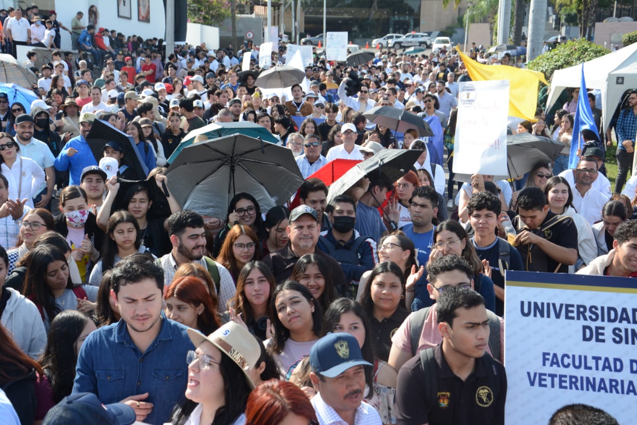 Los estudiantes fueron representados por Ángel Gamaliel Cañedo Reyez, alumno de Arquitectura, quien invitó a toda la sociedad a que se sumen a defender la Autonomía y a la máxima casa de estudios de Sinaloa, y no creer lo que Gobierno Estatal dice porque son mentiras, mientras que la docente de Agronomía, doctora Silvia Alicia Félix aseguró que los mueve la defensa auténtica y pura de la Autonomía, y para repudiar los ataques en contra de las Universidad y su comunidad.