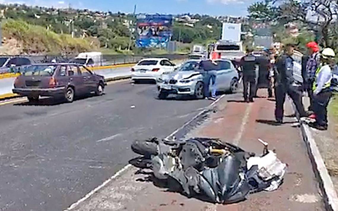 El motociclista circulaba por la autopista cuando fue impactado por dos vehículos que chocaron entre sí.