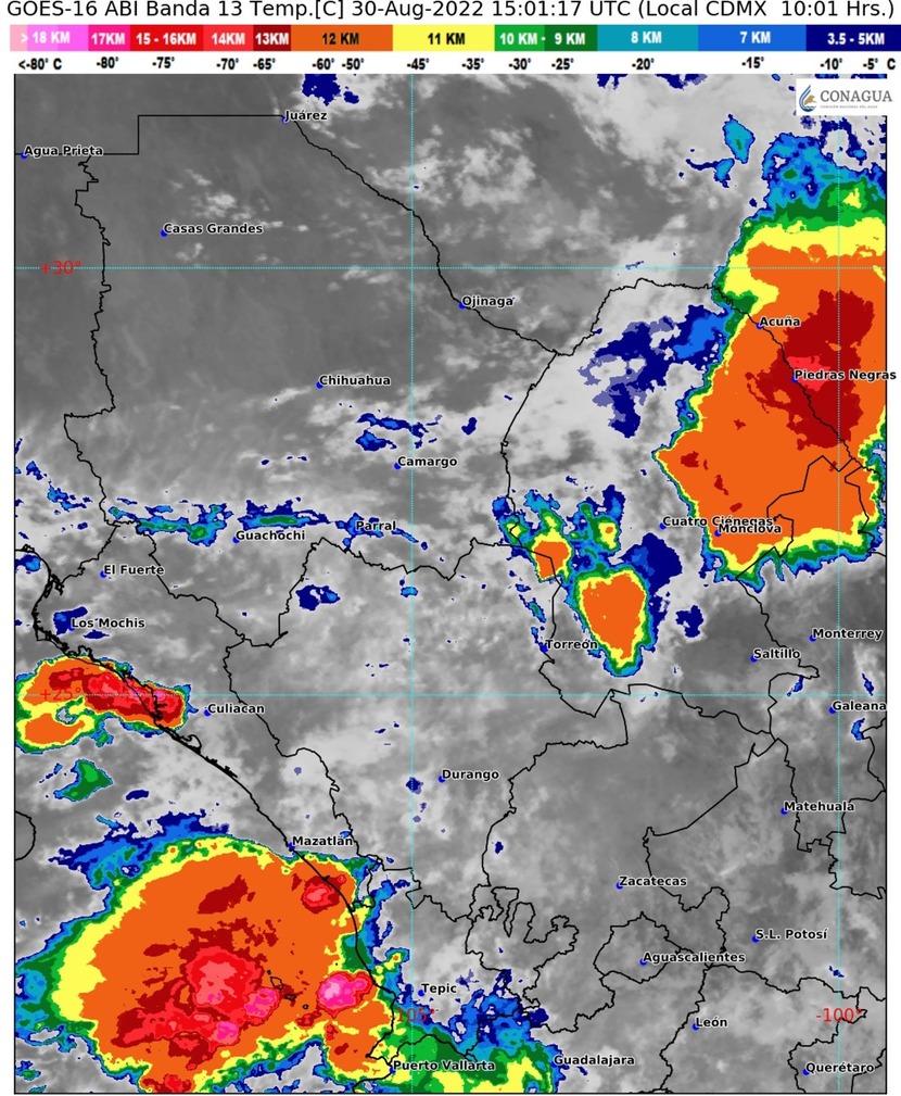Durante la noche de hoy continuarán las lluvias intensas en regiones de Chihuahua, Durango, Sinaloa y Sonora