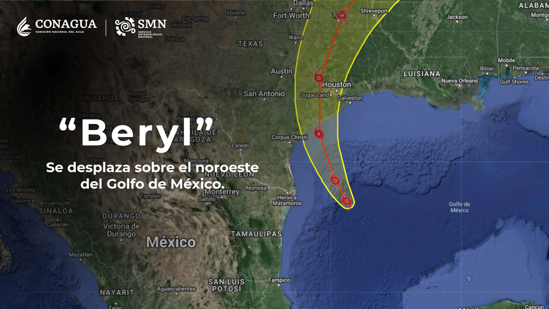 Huracán “Beryl” provocará fuertes lluvias en Tamaulipas; mantiene desplazamiento hacia Texas