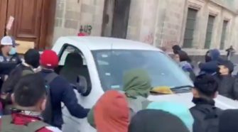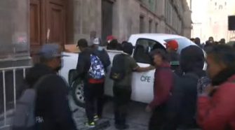 VIDEOS. Normalistas irrumpen en Palacio Nacional durante conferencia de AMLO