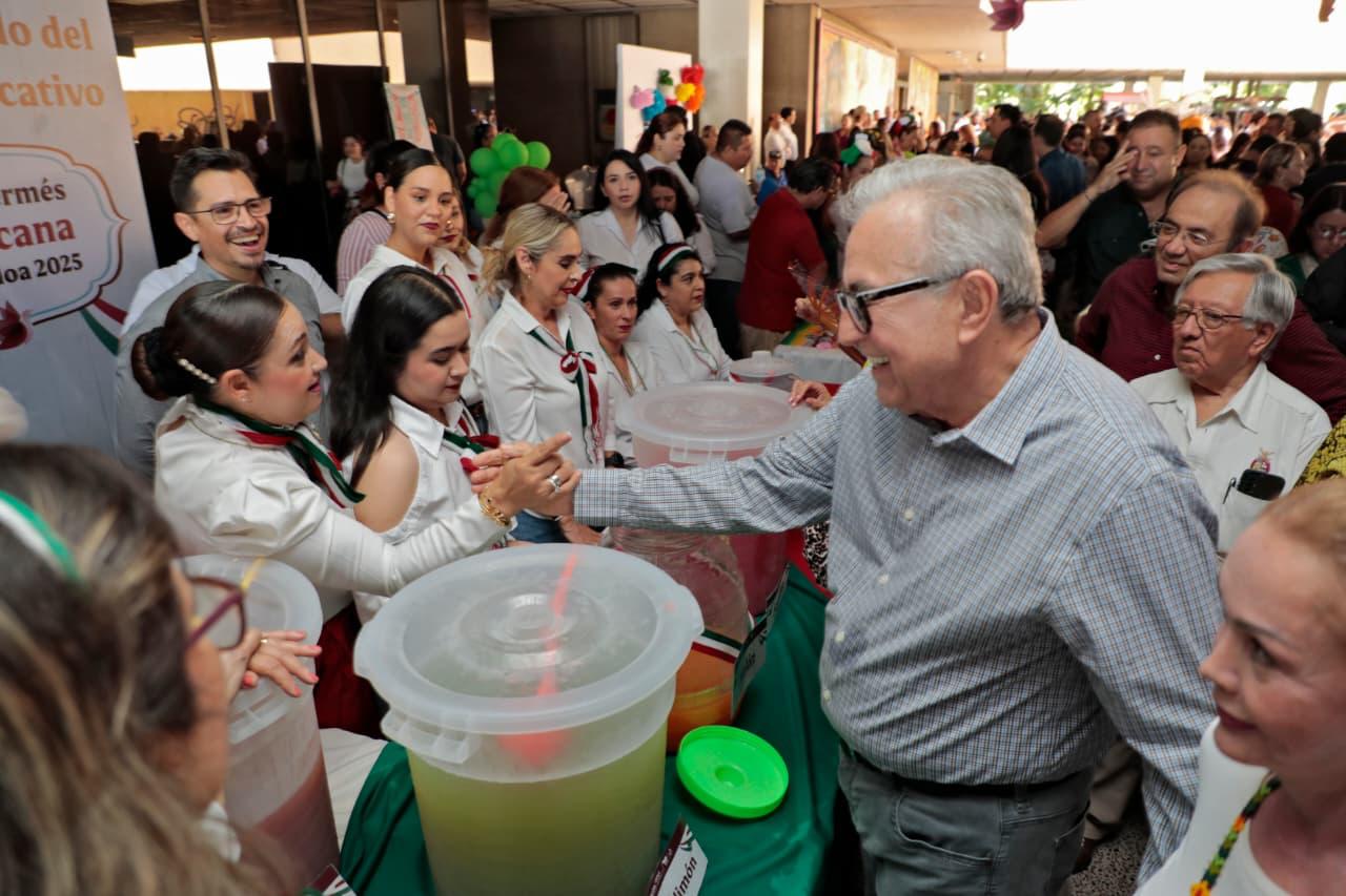 Acompañado por su hija, la presidenta del Sistema DIF Sinaloa, la doctora Eneyda Rocha Ruiz, y por sus secretarios de Gabinete, el gobernador Rocha visitó primeramente la Kermés Mexicana, instalada en la planta baja de Palacio, justo debajo del balcón central, a cargo del mismo DIF y los distintos Voluntariados, y donde cientos de sinaloenses pudieron degustar de platillos típicos, presenciar bailables folclóricos y convivir en familia en un ambiente muy mexicano. Cabe destacar que todo lo recaudado aquí fue en beneficio de la Casa Cuna y Albergue El Refugio, del DIF.