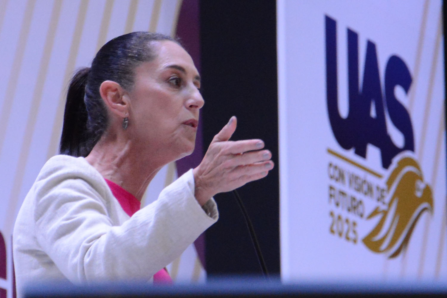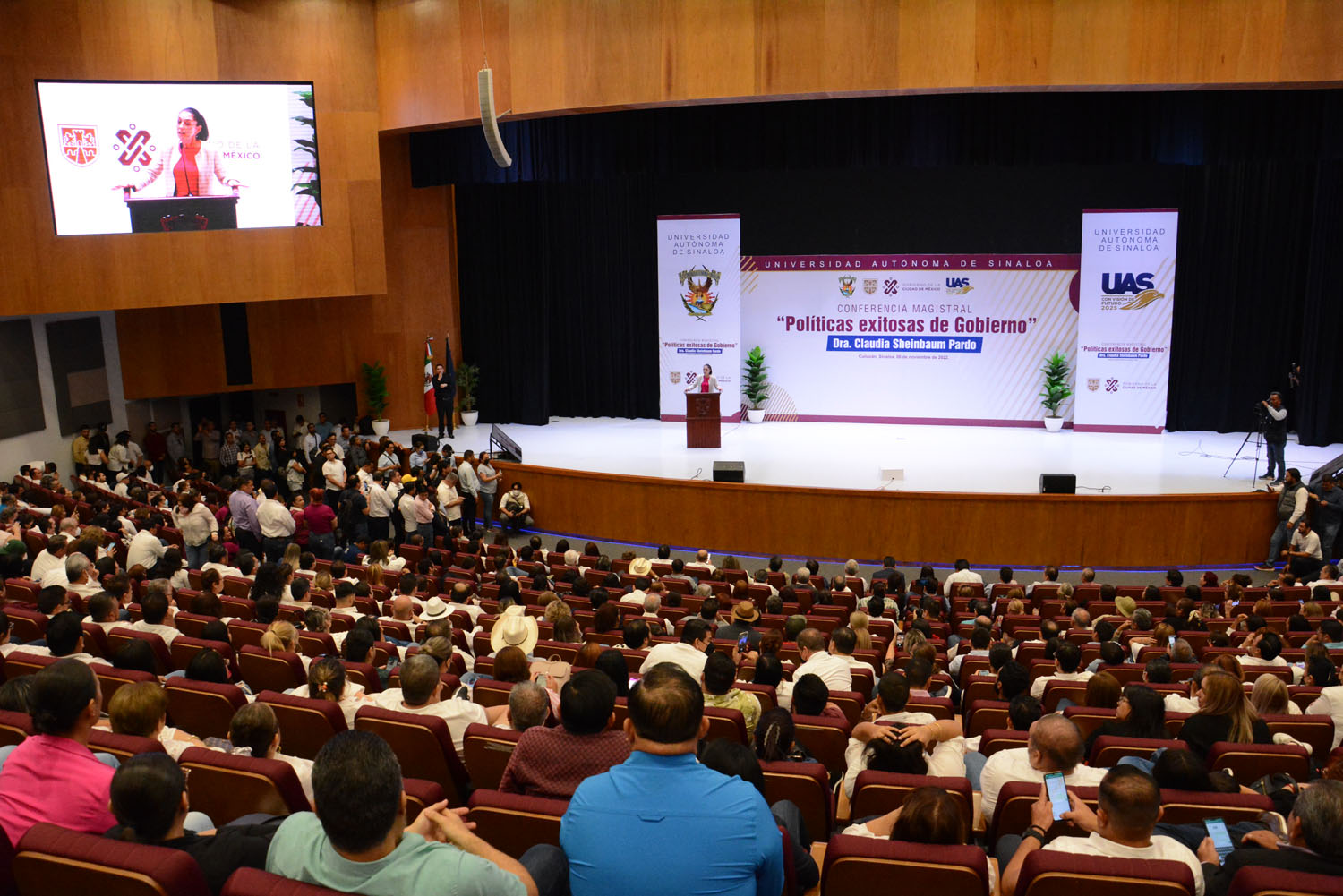 La Universidad Autónoma de Sinaloa (UAS) fue sede para llevar a cabo la Conferencia Magistral “Políticas Exitosas de Gobierno” disertada por la doctora Claudia Sheinbaum Pardo, Jefa de Gobierno de la Ciudad de México, que reunió a universitarios y público en general, así como a funcionarios de los diferentes niveles de gobierno, destacando el Gobernador del Estado, doctor Rubén Rocha Moya.