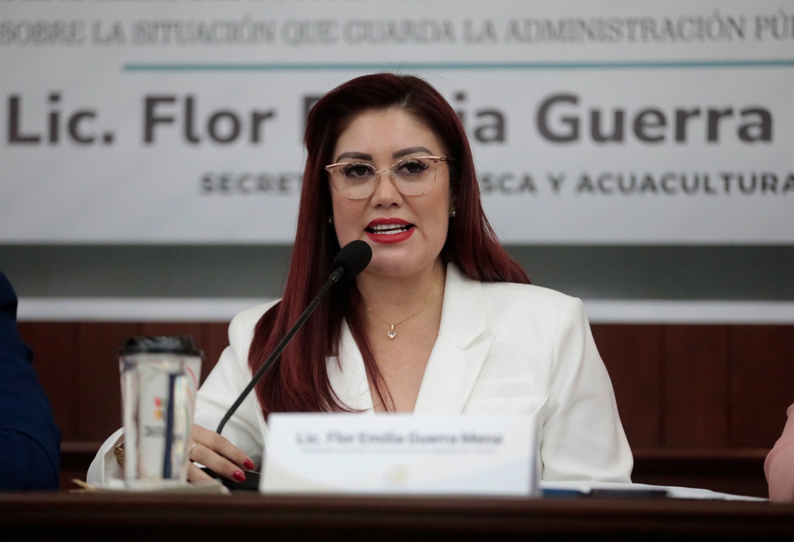 La secretaria de Pesca y Acuacultura Flor Emilia Guerra Mena, compareció ante las y los legisladores del Congreso del Estado de Sinaloa, lugar en el que dio a conocer todas las acciones referentes al sector pesquero y acuícola durante el segundo año de la administración del gobernador Rubén Rocha Moya.