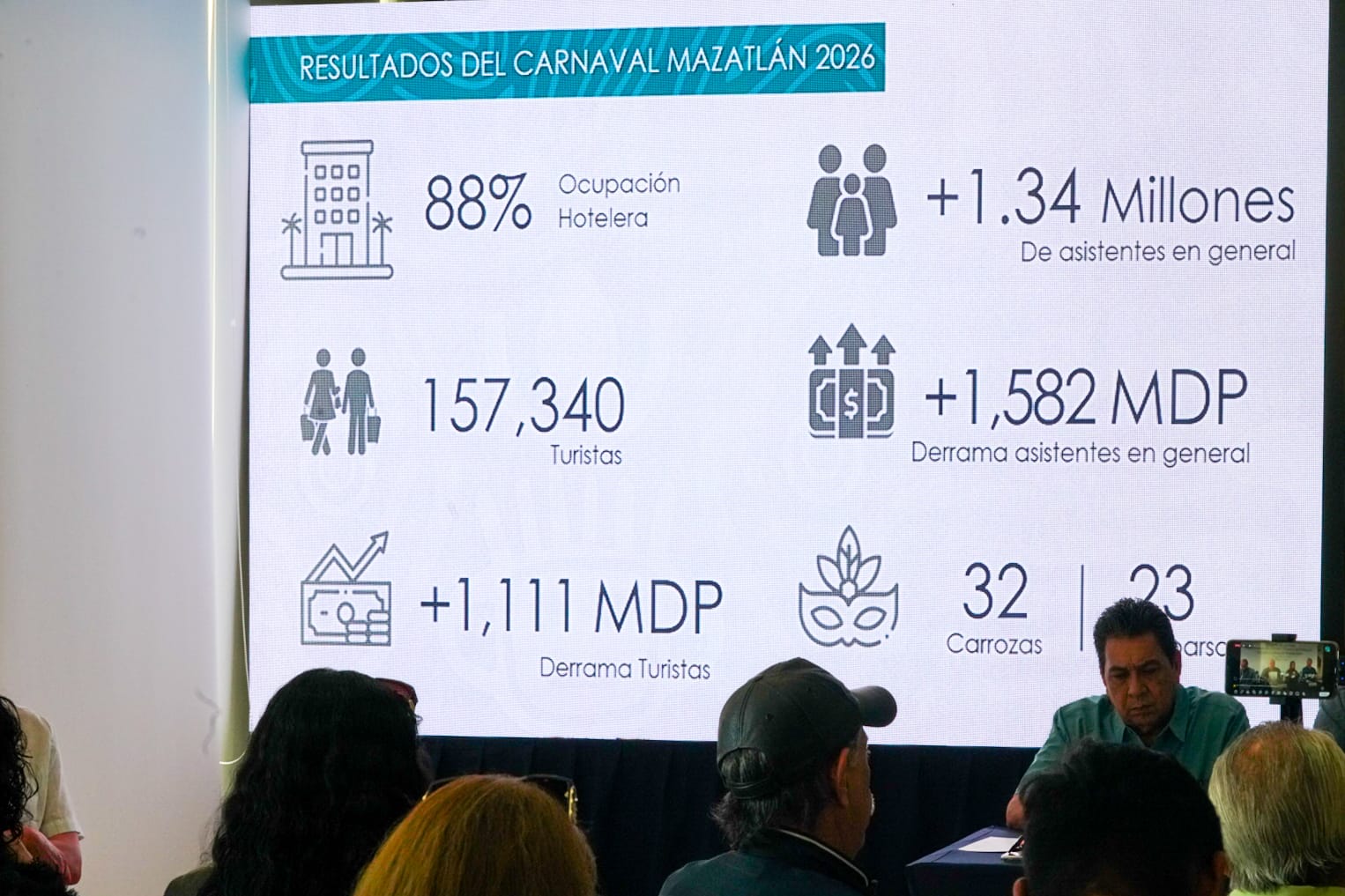 “En Carnaval tuvimos un 88 por ciento de ocupación hotelera, 157,340 turistas, más de 1.34 millones de asistentes en general y una derrama económica superior a 1,582 millones de pesos. Además, hicimos una gira intensa de promoción por ciudades como Monterrey, Saltillo, Torreón, Zacatecas, San Luis Potosí, Guadalajara y Chihuahua previo al Carnaval y presentaciones de destino con agentes de viaje e invitamos a medios nacionales durante el Carnaval para compartir cómo se vive la fiesta”, afirmó.