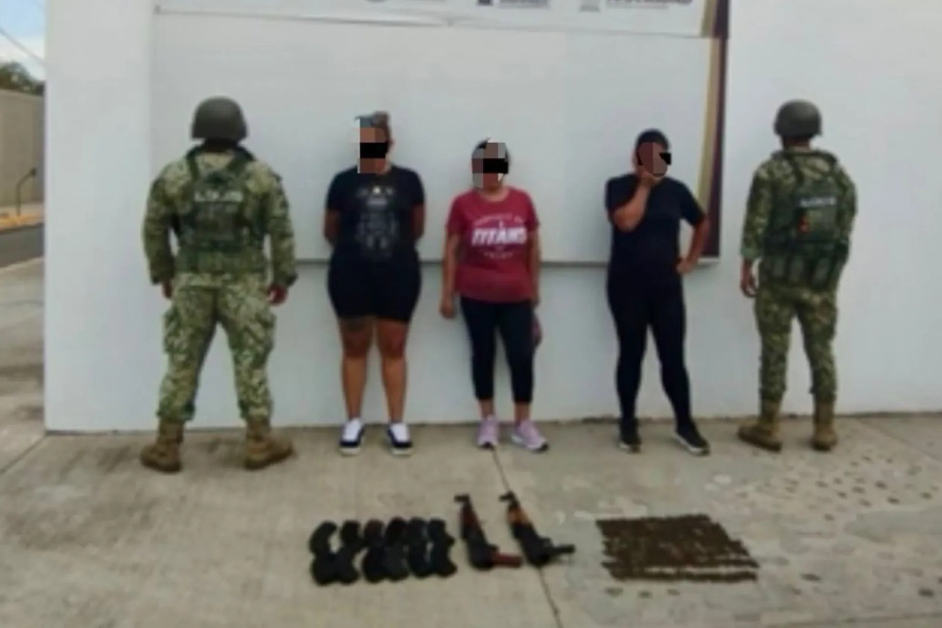 Fuerzas federales detuvieron en Culiacán, Sinaloa, a tres mujeres en posesión de armas de alto calibre y municiones.