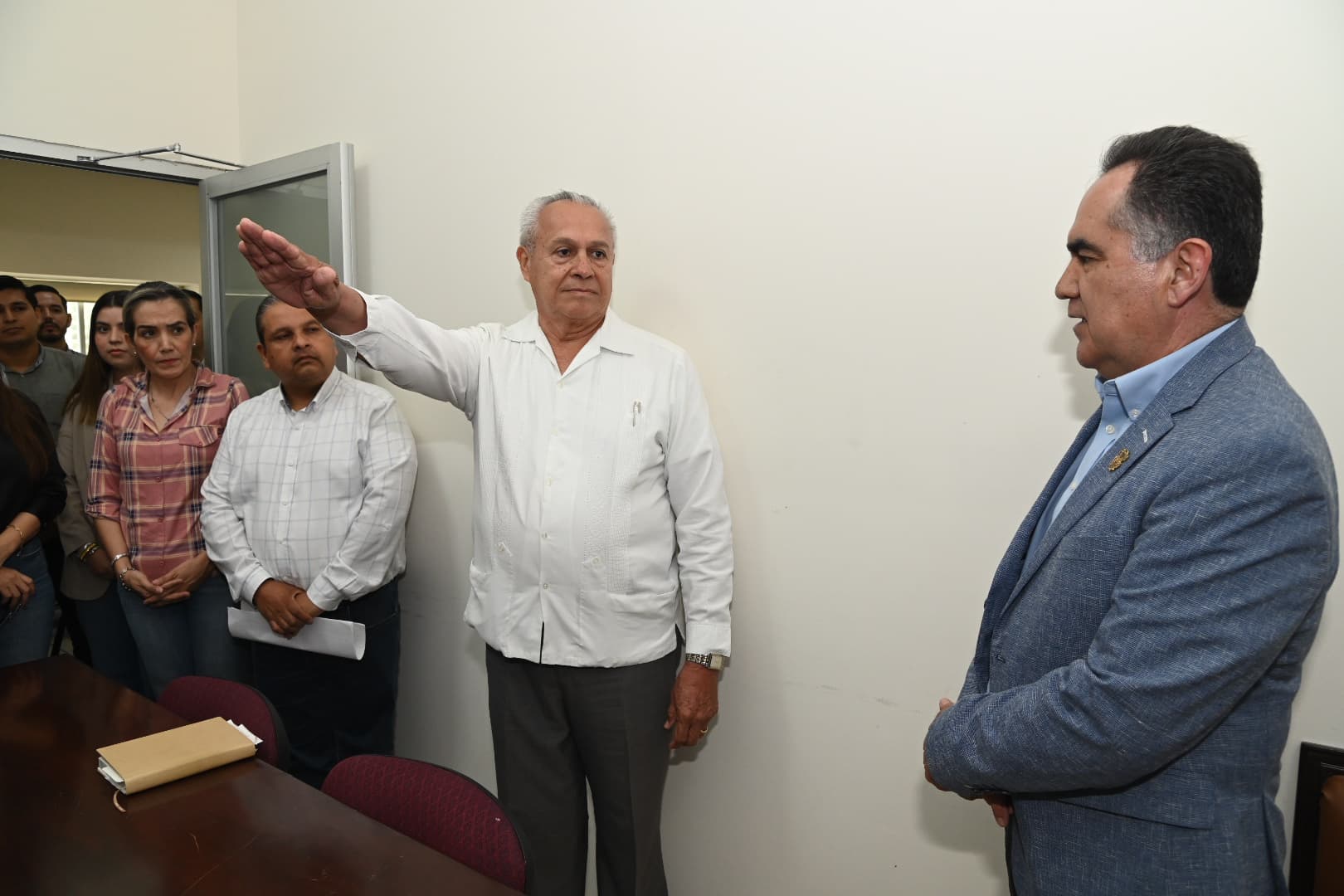 El dirigente universitario pasó a las oficinas de varias de las dependencias que se ubican en el Campus Buelna a tomar la protesta de Ley a quienes integran ahora la nueva administración y en todas ellas estuvieron presentes los trabajadores de cada área para atestiguar el protocolo.
