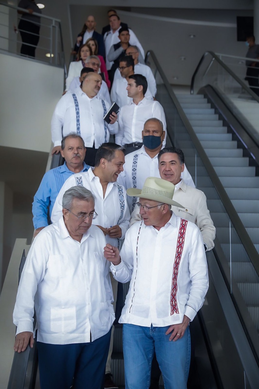 El gobernador Rocha fue acompañado a su vez por el secretario general de Gobierno, Enrique Inzunza Cázarez; el secretario de Seguridad Pública, teniente coronel Cristóbal Castañeda Camarillo; la secretaria de Turismo, Rosario Torres Noriega; el secretario de Administración y Finanzas, Enrique Díaz Vega; el secretario de Economía, Javier Gaxiola Coppel, y la fiscal general del Estado, Sara Bruna Quiñónez.