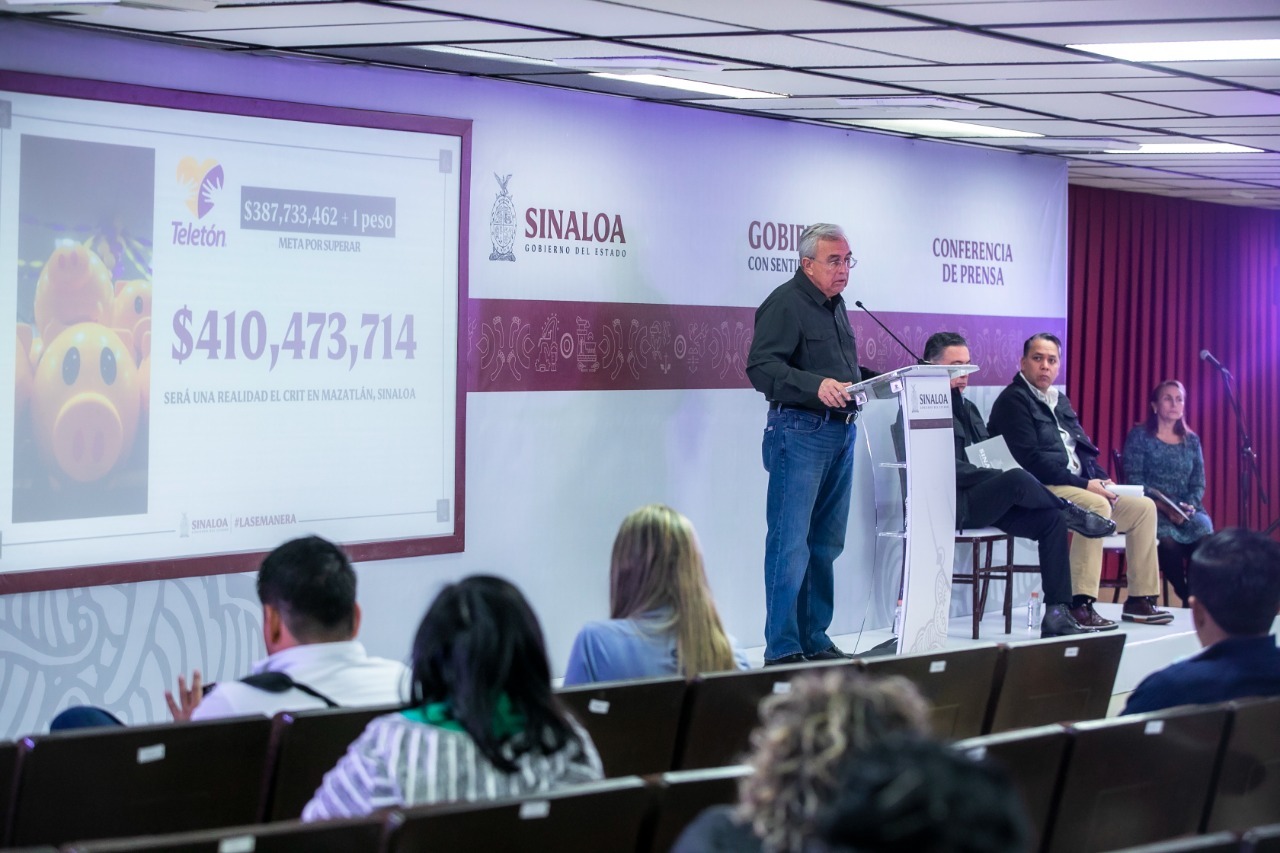 El gobernador Rubén Rocha Moya celebró el que se haya logrado alcanzar y superar con mucho la meta que se fijó la Fundación Teletón para este año, pues gracias a ello será posible la creación de uno de estos Centros en Mazatlán, cuya construcción iniciará en enero y se estima que inicie operaciones entrando el 2024.