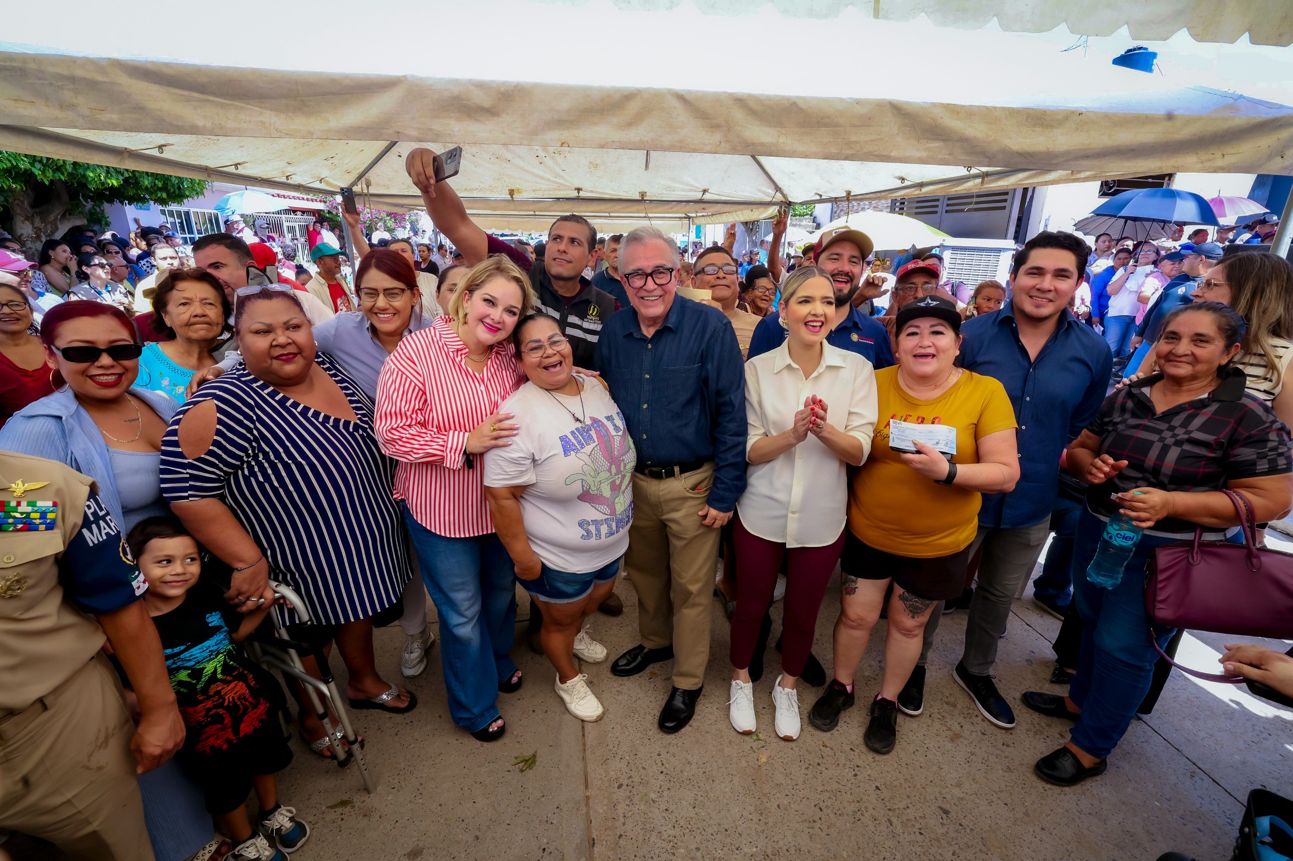 Acompañaron al gobernador Rocha, Joaquín Landeros, secretario de Administración y Finanzas, Ángel Ulises Piña, delegado de Programas para el Bienestar; Edy Alberto Meléndez, Jefe de Estado Mayor de la 4ta Región Naval; Guillermo Caballero de León, Coordinador Estatal de la Guardia Nacional y Mireya Félix, representante de los beneficiados.