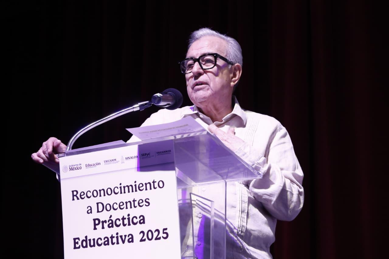 El gobernador Rubén Rocha Moya hizo un exhorto a las maestras y maestros a continuar capacitándose para mejorar la calidad de la educación de Sinaloa, y para ello están los programas que se han implementado en su administración, como el denominado Práctica Educativa 2025, dirigido a personal docente del nivel básico y medio superior, y el Diplomado en Matemáticas y Ciencias.