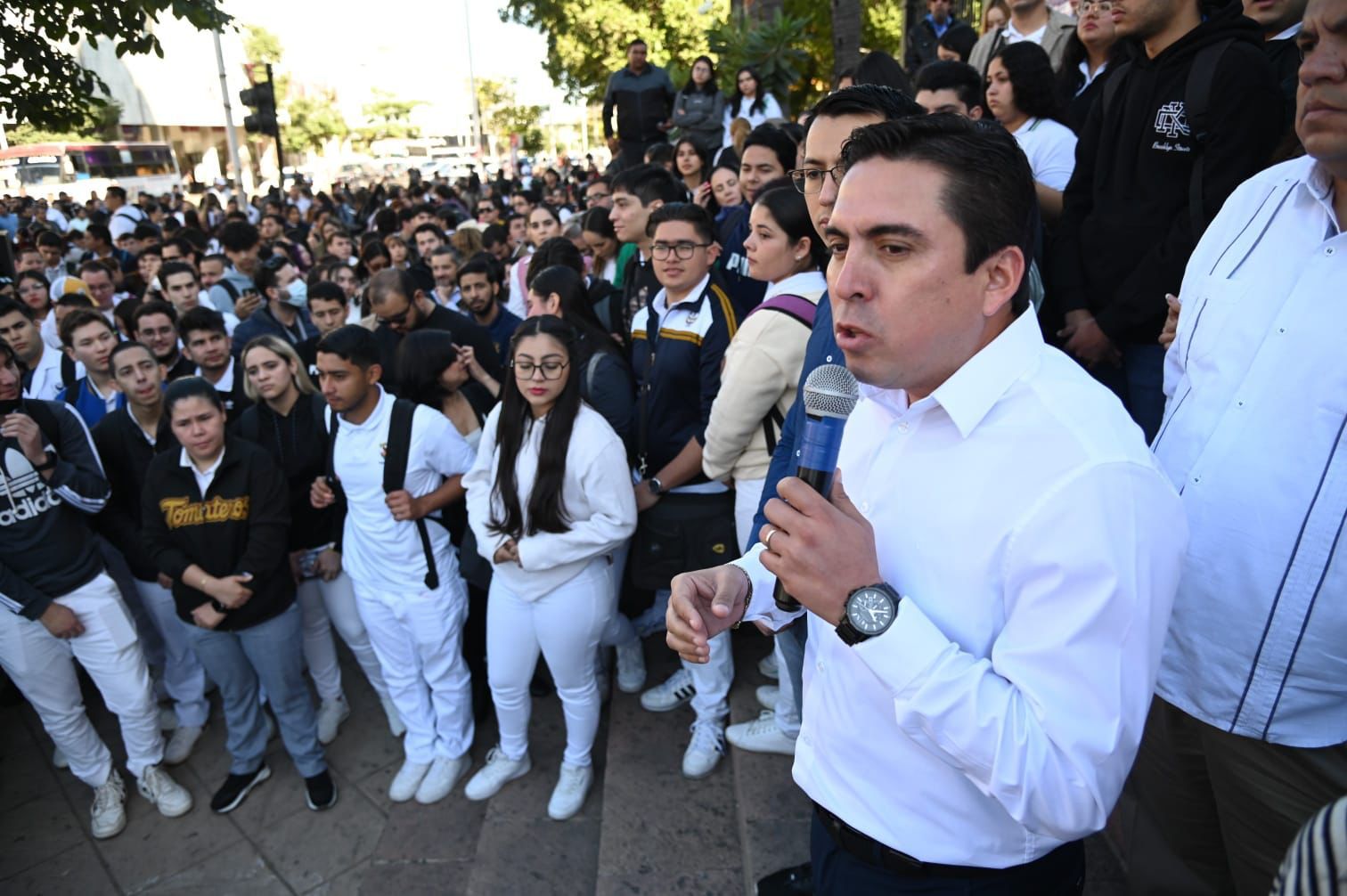 “Estoy aquí en representación de los alumnos de la UAS, haciendo un llamado a las autoridades para que cese esta persecución contra una institución tan noble como es la UAS, nosotros exigimos que se respete la autonomía universitaria”, manifestó Jesús Zazueta Medina, estudiante de la Facultad de ciencias de la educación