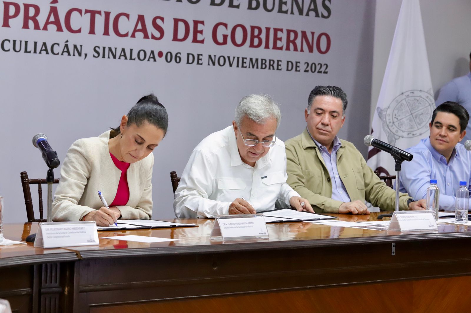 Con el objetivo de compartir experiencias y programas de éxito que permitan refrendar a la ciudadanía el compromiso, responsabilidad y voluntad de la administración estatal para generar la transformación de las comunidades sinaloenses, el Gobernador Rubén Rocha Moya firmó esta mañana un convenio de “Intercambio de Buenas Prácticas de Gobierno” con Claudia Sheinbaum Pardo, Jefa de Gobierno de la Ciudad de México.