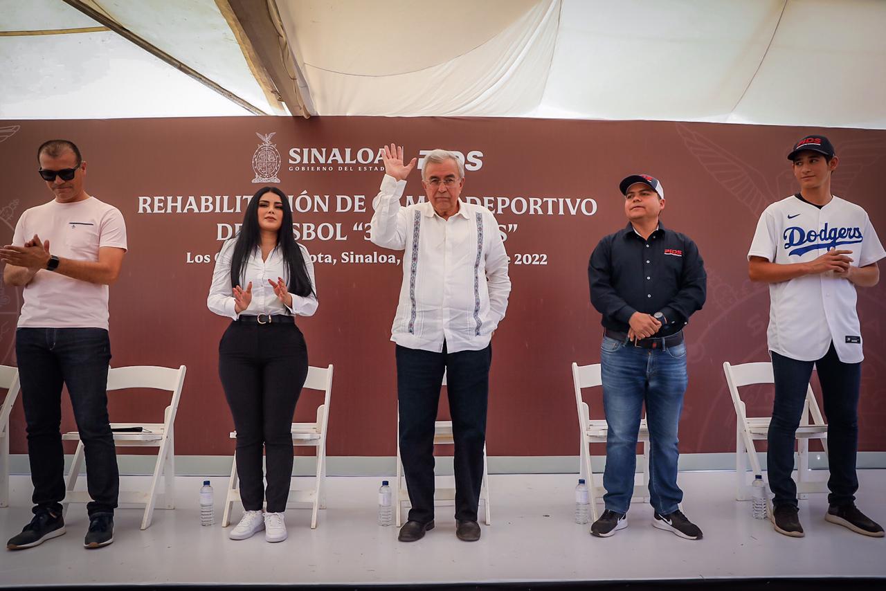 El Gobernador Rubén Rocha Moya entregó la rehabilitación y modernización del Campo de Beisbol “3 Estrellas”, de la comunidad de Caimanes II.