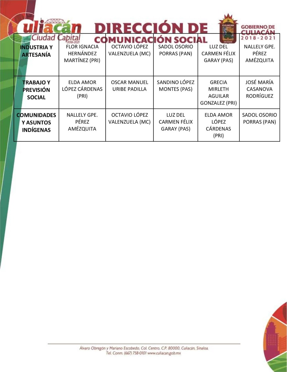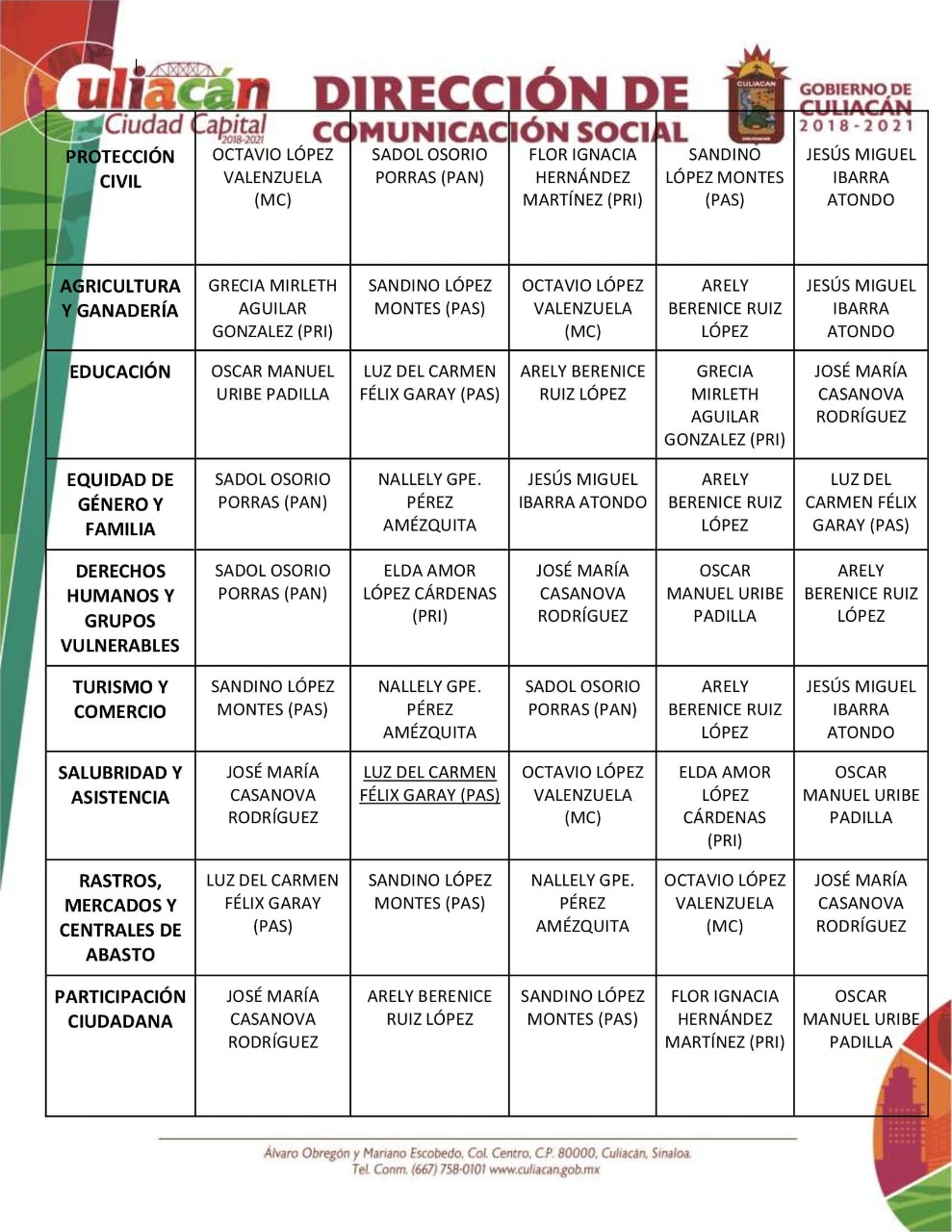 Como último punto del Orden del día se designaron las Comisiones Permanentes integradas por las y los regidores, mismas que quedaron de la siguiente manera:
