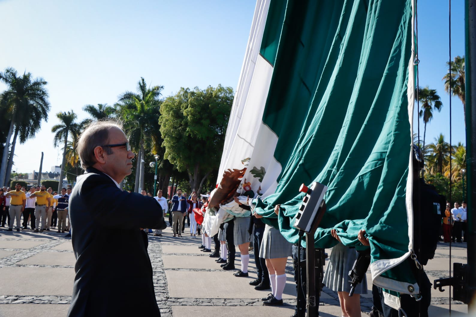 Se montó una Guardia de Honor, con el toque marcial Tres de Diana a cargo de la Banda de Guerra y Escolta del COBAES 25 “Gral. Salvador Alvarado”, de Culiacán.