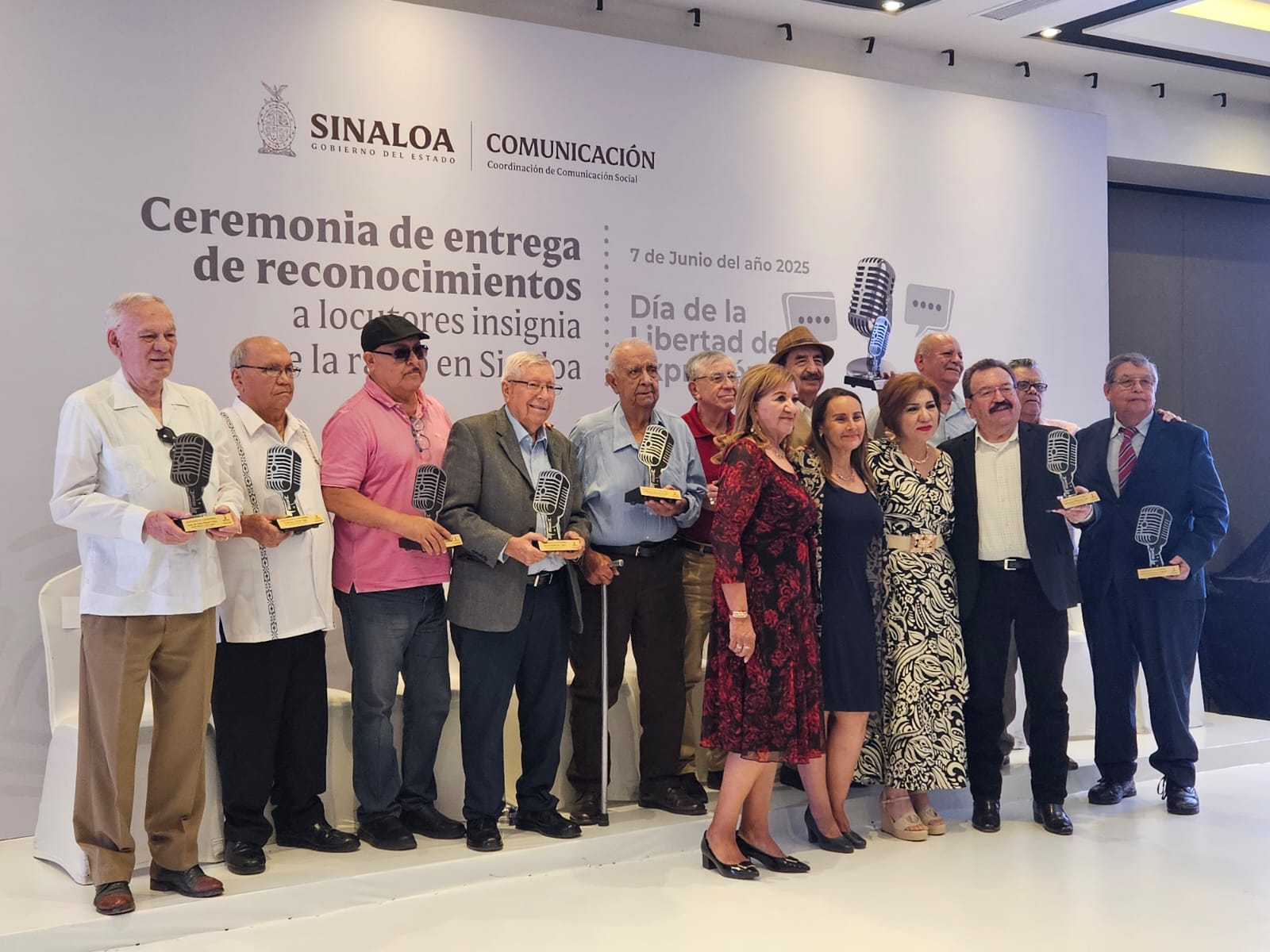 En el marco de la conmemoración del Día de la Libertad de Expresión, el Gobierno del Estado de Sinaloa, a través de la Coordinación de Comunicación Social, encabezada por Adriana Ochoa del Toro y el Sindicato de Trabajadores de la Industria de la Radio y la Televisión delegaciones Culiacán, Mazatlán y Los Mochis, reconoció la destacada trayectoria de 12 locutores insignia del ayer, que forman parte de la historia periodística de Sinaloa.