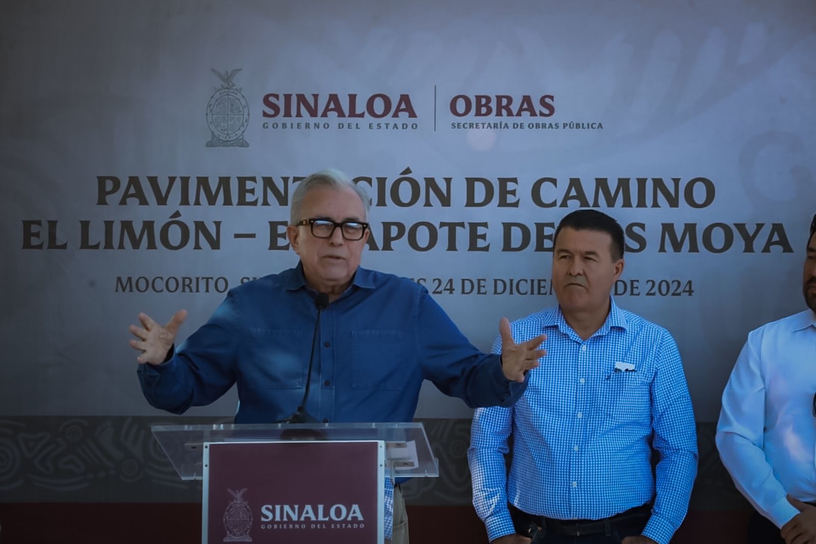 Horas antes de la Nochebuena, el gobernador Rubén Rocha Moya visitó por la tarde el poblado de El Zapote de los Moya, para inaugurar un tramo más de esta carretera que comunicará a Badiraguato con Mocorito, como fue el compromiso que hizo con los habitantes de ambos municipios.
