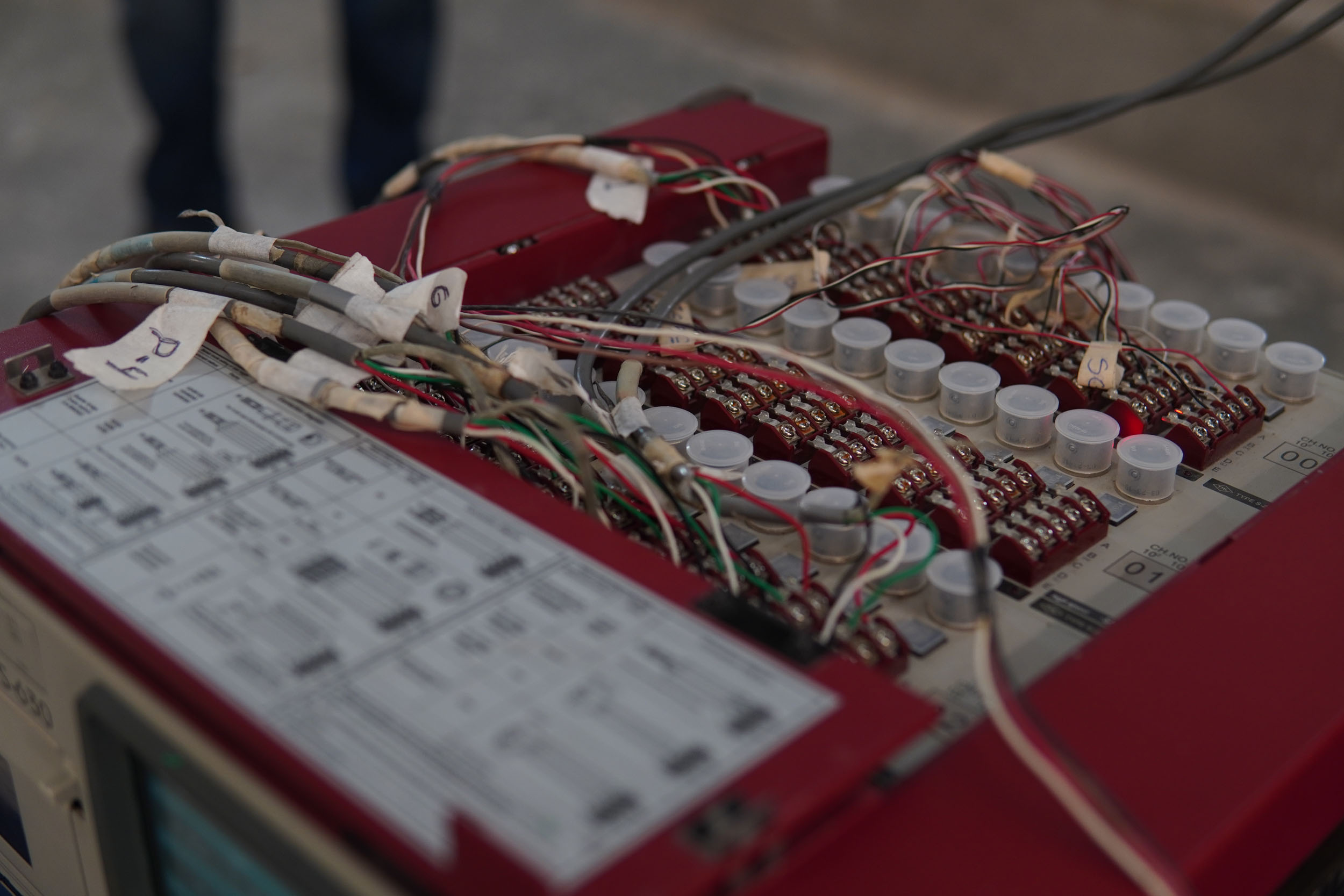 · Extensómetros colocados en las varillas de acero para medir su desempeño y determinar su contribución a la resistencia del sistema.