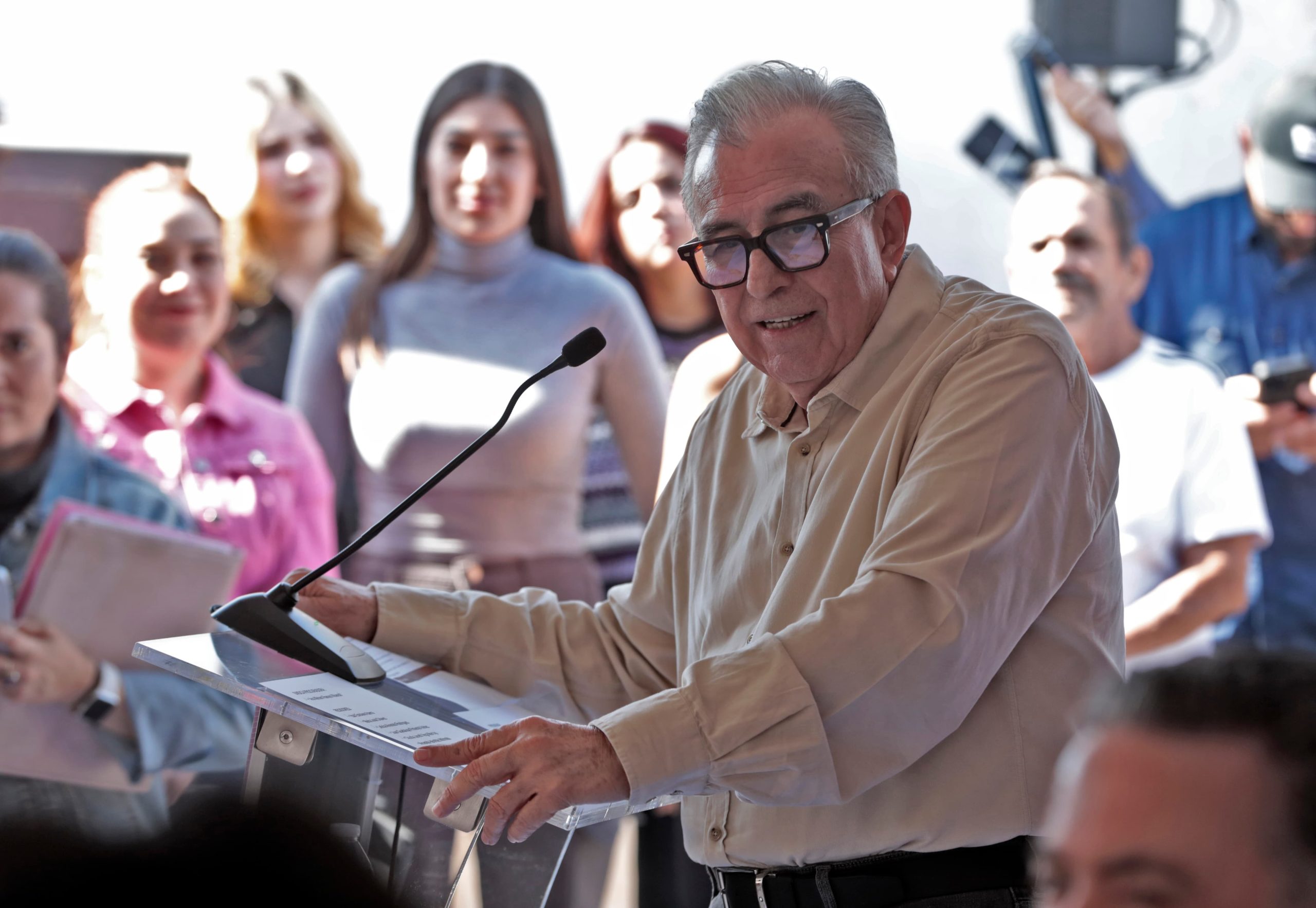 El mandatario estatal aprovechó para anunciar obra de gran magnitud, que justo iniciará a unos cuantos metros, como es la construcción de un libramiento de 278 millones de pesos que conectará el bulevar Agricultores con la carretera llamada “La Costerita”, que es la prolongación de la autopista Benito Juárez, hasta su entronque con la carretera Internacional México 15.