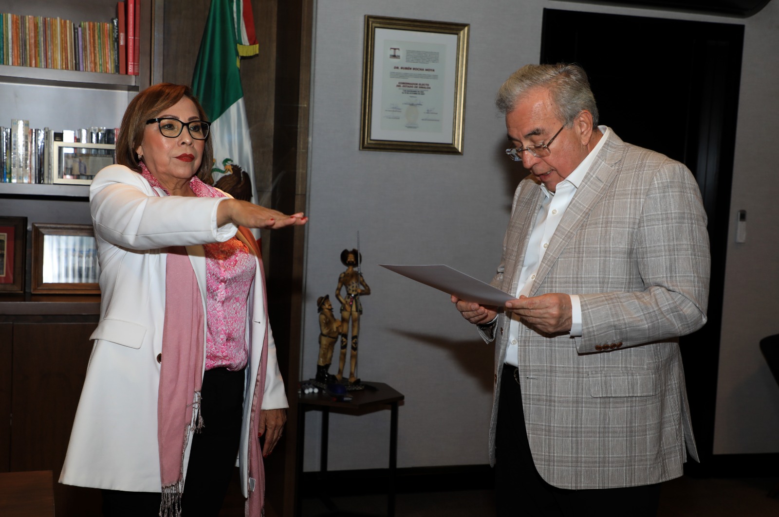 Hoy por la mañana, el Gobernador Rubén Rocha Moya, acompañado de Enrique Inzunza Cázarez, Secretario General de Gobierno, tomó protesta a Ana Alicia Cervantes Contreras como Subsecretaria de Educación Básica de la Secretaría de Educación Pública y Cultura, en sustitución de Horacio Lora Oliva, quién dejó el cargo en días pasados.