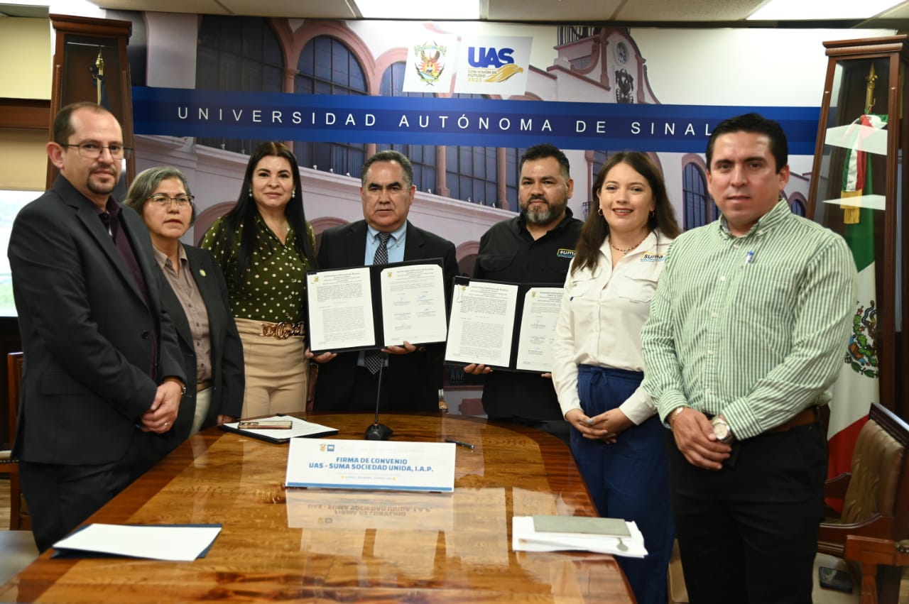 La Universidad Autónoma de Sinaloa firmó un Convenio General de Colaboración con SUMA Sociedad Unida, I.A.P., a fin de fortalecer la hermandad entre ambas instituciones y ampliar sus horizontes en torno a la educación, el cultivo de los valores y la promoción de la cultura de la paz como fundamentos imprescindibles para el desarrollo de la comunidad universitaria y de la sociedad en general.