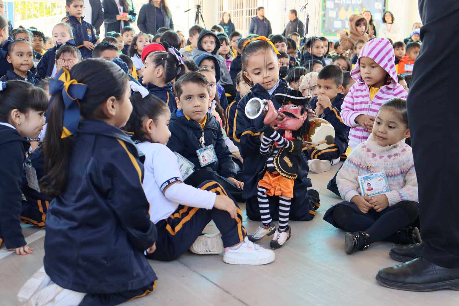 Los pequeños también disfrutaron de la magia del teatro guiñol con la obra “Variación de títeres, para unas manos” a cargo del grupo Guiñoleros UAS, donde personajes como el Payaso Rabanito y su saxofón; el hombre orquesta Don Efigenio Castro y la banda Pesadilla dibujaron sonrisas y pusieron a bailar a las niñas y niños del kínder.