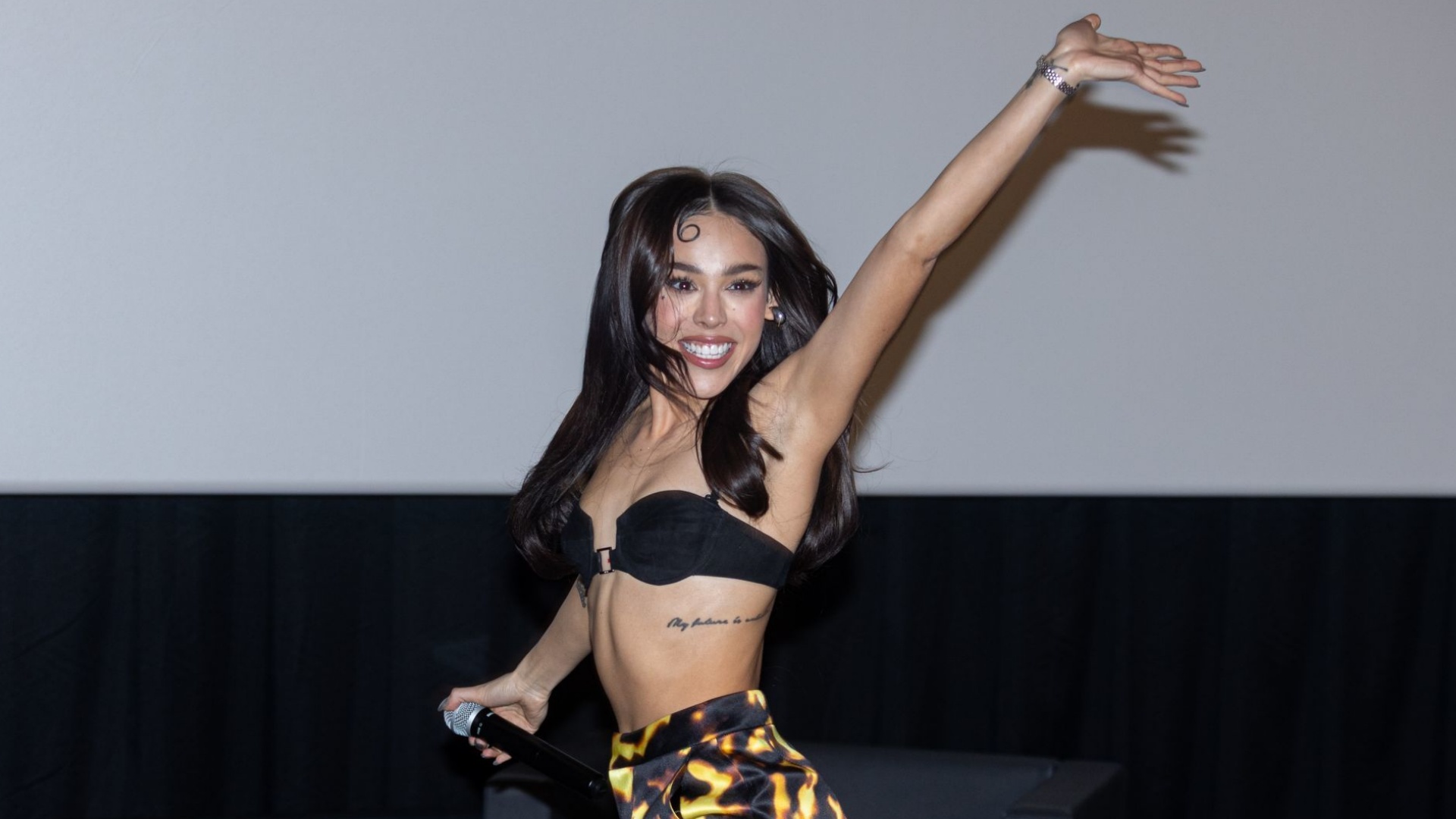 Ella junto a su equipo, suben una historia de Instagram que se veían llamas de fuego, insinuando a que el look estaba relacionado con su próximo sencillo.