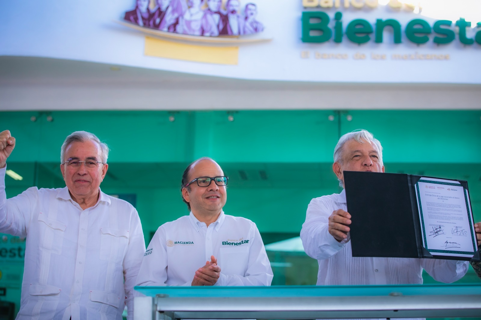 El presidente de México Andrés Manuel López Obrador acompañado por el gobernador Rubén Rocha Moya inauguraron desde Culiacán los 2 mil 749 Bancos del Bienestar, de los cuales un total de 60 se encuentran en Sinaloa. López Obrador indicó que “No puede haber gobierno rico, con pueblo pobre” por lo que aseguró que todo el dinero que las personas retiren de estos bancos proviene de lo recaudado en el combate a la corrupción y de un gobierno austero.