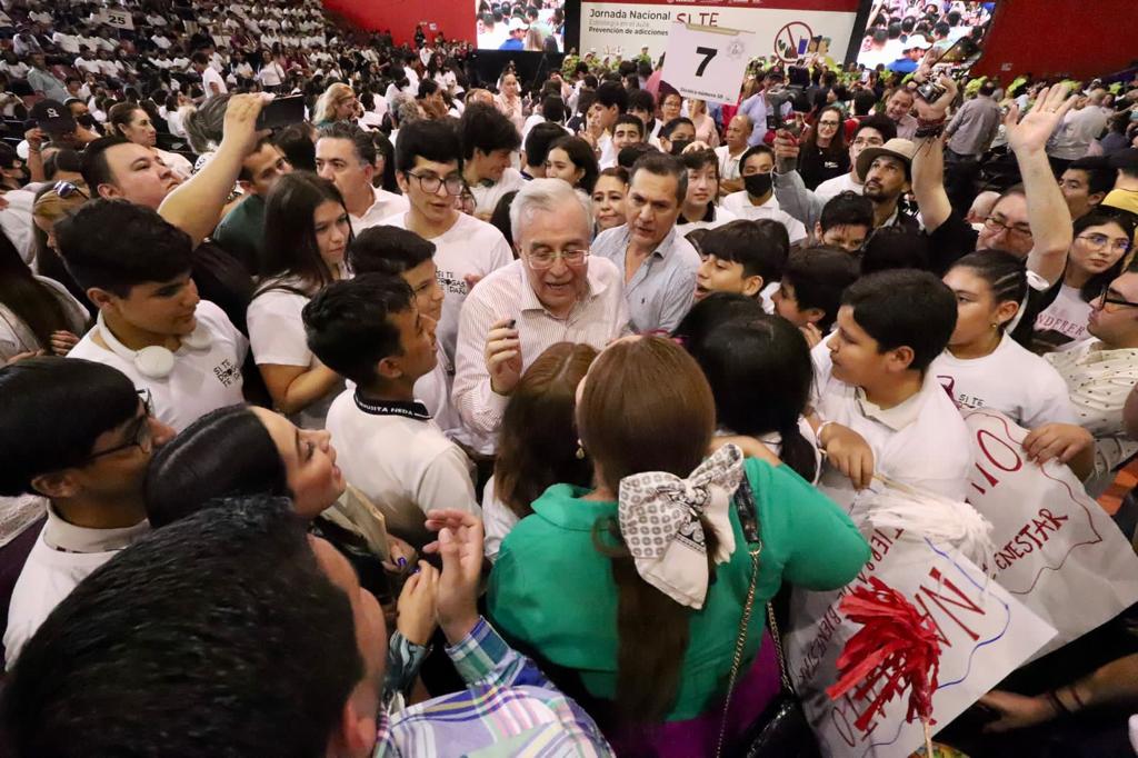 “Si te drogas te dañas, es una jornada nacional este día, simultáneamente, en todas las entidades federativas. Esta campaña permanente que hemos iniciado el 17 de abril, hace dos meses, se trabaja en el aula al menos tres veces a la semana y por ello queremos reconocer el esfuerzo y el trabajo de todas las maestras y los maestros, porque en ellos recae esta estrategia tan relevante para la salud de nuestra juventud”, precisó la Secretaria de Educación.