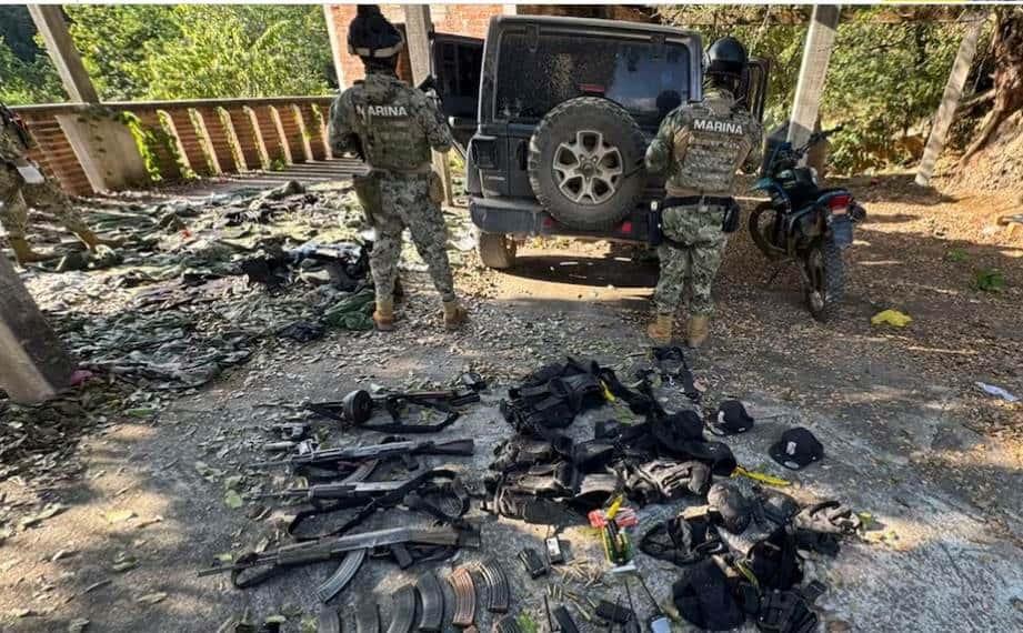 Elementos de la Infantería de Marina aseguraron armamento, un vehículo y una motocicleta del los “Chapitos” del Cártel de Sinaloa.