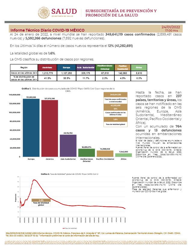 La Secretaría de Salud informó este lunes que México suma 4 millones 685 mil 767 casos y 303 mil 301 muertes por COVID-19