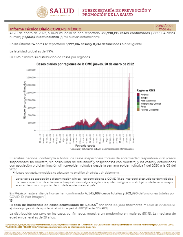 La Secretaría de Salud informó este jueves que México suma 4 millones 545 mil 683 casos y 302 mil 390 muertes por COVID-19