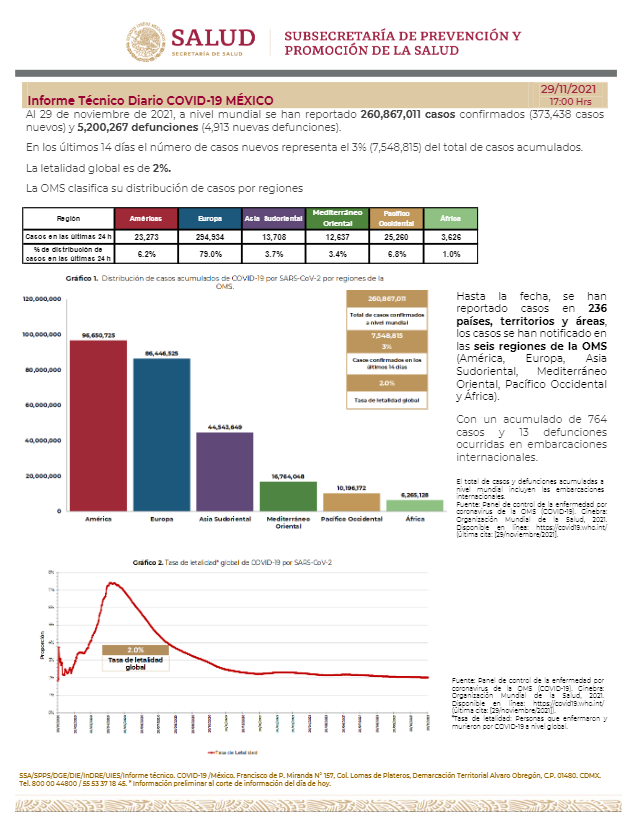 En México, en los reportes de domingo y lunes las cifras bajan debido al procesamiento de información del fin de semana.