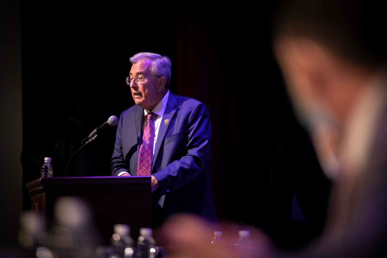 “Doctor Rubén Rocha Moya, en usted vemos no sólo al gobernador de Sinaloa, sino también al universitario que siempre ha sido, a un amigo y mentor, a un ciudadano responsable y comprometido con la gente”, le dijo el rector.