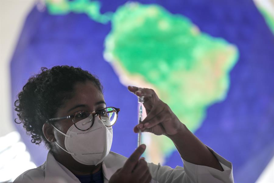 BRA01 - RIO DE JANEIRO (BRASIL), 17/01/2022 - Una trabajadora de la Salud prepara una dosis de la vacuna contra la Covid19, hoy en Río de Janeiro, Brasil. Una de las mayores ciudades de Brasil, Rio comienza este lunes oficialmente la vacunación anticovid para niños entre 5 y 11 años, que había iniciado de manera protocolaria el viernes en algunas regiones. EFE/André Coelho