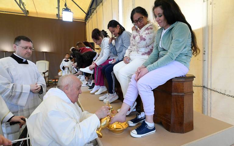 El papa Francisco acudió este jueves a la cárcel femenina de Roma para celebrar la misa del Jueves Santo y, desde su silla de ruedas, lavó los pies a doce reclusas, una tradición con la que imita a Jesús con sus discípulos en la ‘Última Cena‘.