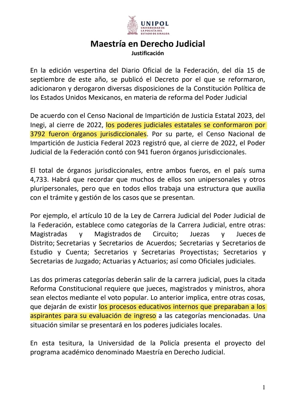 Luego de las reformas constitucionales y posterior a ello que se diera a conocer ante la opinión pública, que el proceso de selección de los integrantes del Poder Judicial, será el próximo 1 de junio a través del voto popular, la Universidad de la Policía (Unipol), proyecta poner en marcha en el año 2025, la Maestría en Derecho judicial para todas las y los interesados que reúnen el perfil y los conocimientos para buscar ser electos en el proceso antes citado.