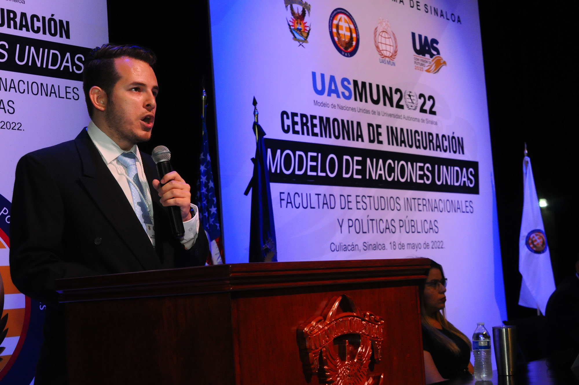 Con la finalidad de enriquecer las habilidades y conocimientos de los universitarios, la Facultad de Estudios Internacionales y Políticas Públicas (FEIyPP) inauguró el Modelo de Naciones Unidas de la Universidad Autónoma de Sinaloa UAS MUN 2022, que se llevará a cabo a lo largo de tres días.