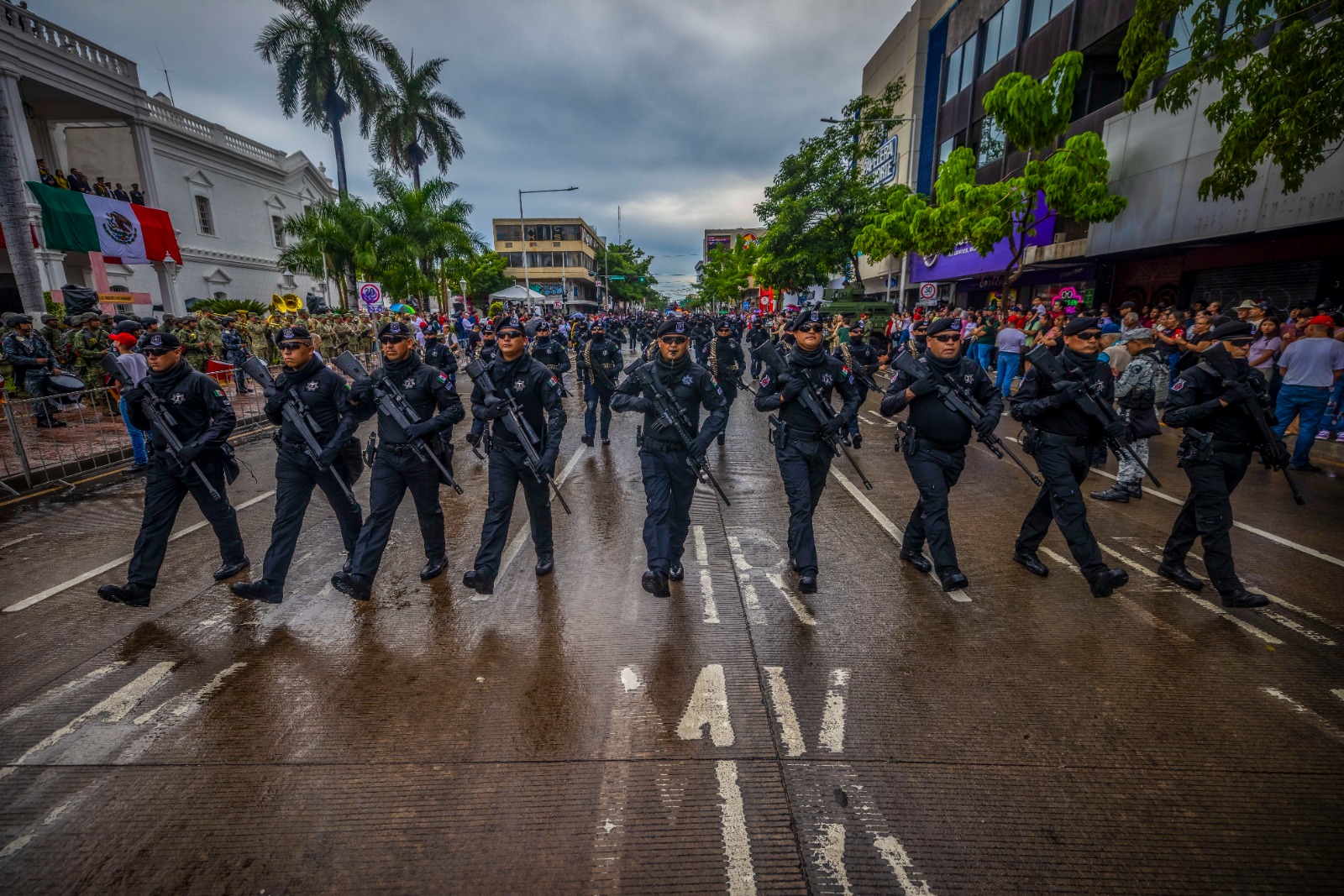 Conmemorando el 215 aniversario del inicio de la guerra de Independencia de México, el Gobernador Rubén Rocha Moya, presenció, desde el balcón del Ayuntamiento, el tradicional desfile militar, como un homenaje al legado de nuestros héroes que nos dieron patria.