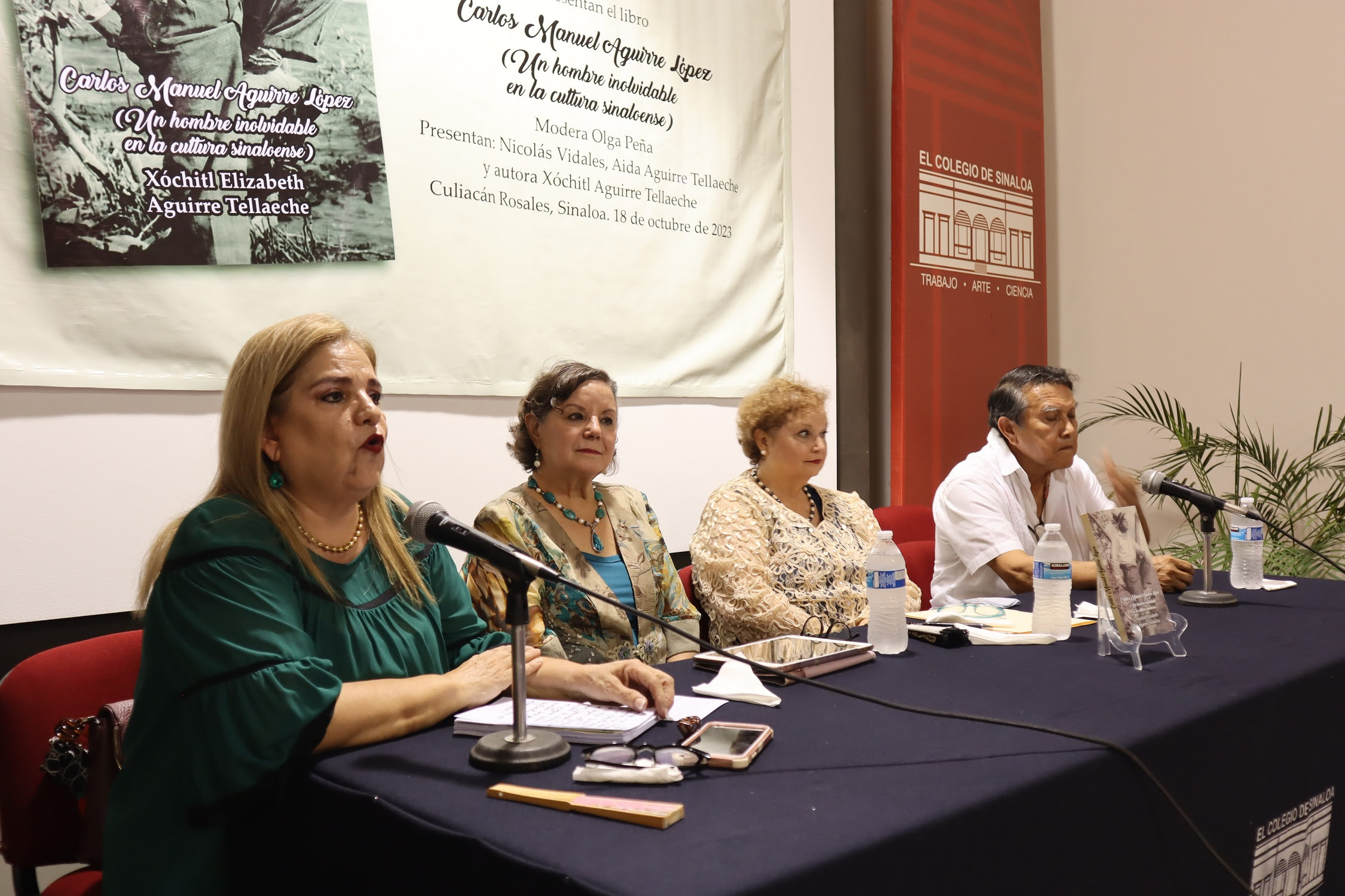 Para hablar de uno de los personajes representativos de Sinaloa, Xóchitl Aguirre Tellaeche presentó el libro de su autoría: Carlos Manuel Aguirre López (Un hombre inolvidable en la cultura sinaloense), el miércoles 18 de octubre del presente año, en el vestíbulo de El Colegio de Sinaloa. La actividad se realizó en coordinación con la Fundación Dr. Enrique Peña Gutiérrez, A.C. y Creativos 7 Editorial. Compartieron sus comentarios Nicolás Vidales y Aida Aguirre Tellaeche; mientras que Olga Peña fungió como moderadora.