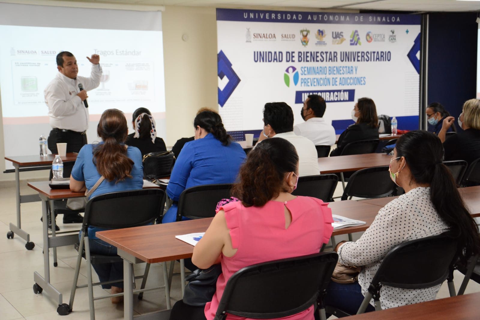En su mensaje de bienvenida, la maestra en ciencias Sofía Angulo de Madueña, directora de la Unidad de Bienestar Universitario (UBU) exhortó a los asistentes a aprovechar la información que ahí se les proporcionará para ser parte de grupo social que se encargará de promover con la sociedad las estrategias necesarias para combatir la amenaza a la salud física y mental que representan las drogas, tanto legales como ilegales.
