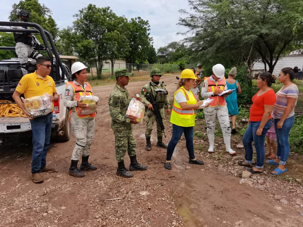 Como parte de las acciones de atención a la población afectada por las lluvias derivadas del huracán “Kay” en Sinaloa, esta tarde, el Instituto Estatal de Protección Civil, que dirige Aurelio Roy Navarrete Cuevas, en coordinación con Guardia Nacional, Ejército Mexicano y Protección Civil Municipal, brindó el apoyo para la entrega de despensas a familias de las comunidades de “Ojitos” y “Lo de Vega”, municipio de El Fuerte, donde además, se realizó un recorrido para verificar posibles afectaciones en paredes y techos de algunas viviendas, detectando un total de 63 casas en las comunidades de Sibajahui, Ejido Palo Verde y Ejido Km 19.