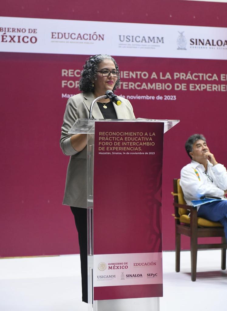 Mencionó que en la iniciativa de Reforma al Artículo Tercero Constitucional en el 2018, a las y los maestros se les concibe como agentes fundamentales de la transformación social, toda vez que anteriormente se les trató de manera insultante, “en donde se criminalizó incluso a las maestras y los maestros y se nos responsabilizó del fracaso educativo, hoy es todo lo contrario, se busca recuperar que ustedes maestras y maestros vuelvan a tener pues ese prestigio tan importante que nunca debió perderse. Estoy completamente segura que todos los días trabajan de manera incansable para que este país salga adelante. Así mismo esta visión de revalorización del magisterio es compartida e implementada por las autoridades presentes, por el propio gobernador constitucional del estado de Sinaloa, el Dr. Rubén Rocha Moya y por la Secretaria de Educación Graciela Domínguez Nava”.